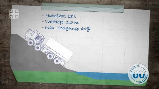 Das Wacken Festival versinkt im Schlamm - Zeit für die schweren Jungs der Bundeswehr. Mit dem Faltstraßengerät auf MAN-Basis rücken die Pioniere an, um Notfallwege zu errichten. Der 360 PS starke Spezialist verlegt in nur 10 Minuten 50 Meter befestigte Straße, selbst durch 1,2 Meter tiefes Wasser. Noch gewaltiger: Der SLT Elefant mit 735 PS und 21,6 Liter Hubraum. Der Schwerlasttransporter stemmt 92 Tonnen Gesamtgewicht und schleppt bis zu 52 Tonnen Nutzlast. Mit 18,8 Metern Länge und über 3 Metern Höhe ist er der König der Logistik-Monster. Sein noch stärkerer Bruder, der SLT Mammut, bringt es sogar auf 130 Tonnen und verfügt über zwei 20-Tonnen-Winden. Das Video zeigt diese und weitere Spezialfahrzeuge der Bundeswehr im Detail - von der schwimmfähigen Schnellbrücke M3 bis zum 44-Tonnen-K