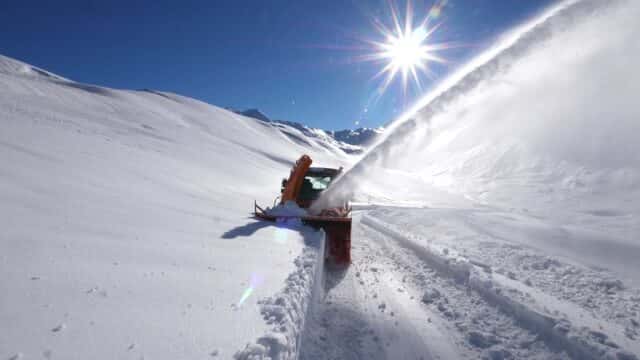 Der Mercedes Unimog beweist einmal mehr seine außergewöhnliche Vielseitigkeit: Als U 530 mit Schneefräsen-Anbau kämpft sich der Alleskönner durch meterhohe Schneemassen. Der 7,7-Liter-Sechszylinder mit 300 PS treibt dabei nicht nur das Fahrzeug an, sondern versorgt auch das Schneeräum-Equipment über die Zapfwelle mit Power. Dank Allradantrieb, Portalachsen und der charakteristischen hohen Bodenfreiheit bahnt sich der Unimog souverän seinen Weg durch die winterliche Bergwelt. Die Front-Schneefräse schleudert dabei bis zu 1.500 Tonnen Schnee pro Stunde zur Seite. Ein beeindruckendes Beispiel dafür, wie sich der ursprüngliche Ackerschlepper zum universellen Arbeitsgerät entwickelt hat. Seit 75 Jahren steht der Name Unimog für extreme Geländegängigkeit und maximale Flexibilität im Einsatz.