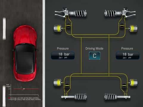 Okay, dafür mussten die Entwickler die gesamte Technik-Vorratskammer leer- und alles in den SL einräumen: vollvariabler Allradantrieb, zusätzlich gelenkte Hinterräder (2,5 Grad gegensinnig, 0,7 Grad gleichsinnig), dazu die Wankstabilisierung Active Ride Control. Die verschaltet die adaptiven Stoßdämpfer sowohl in Druck- als auch Zugstufe über zwei hydraulische Kreisläufe miteinander.