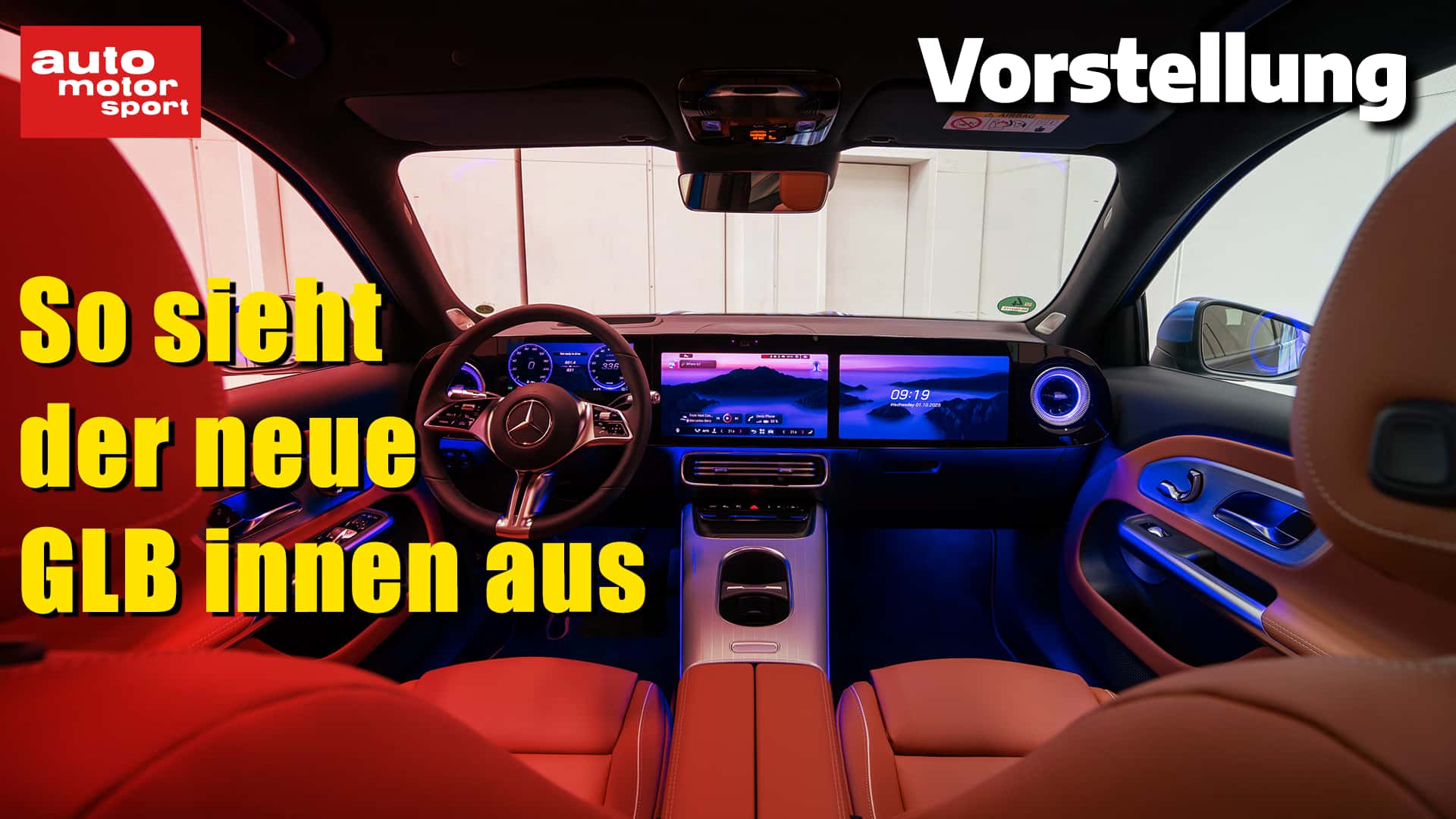Das Interieur des neuen GLB soll Komfort und Luxus neu definieren. Anstelle des bisherigen skulpturalen Designs tritt ein minimalistisches Konzept mit dem Fokus auf wenige ikonische Hightech-Elemente. Die Gestaltung ist auf das Wesentliche reduziert und vermittelt ein hochmodernes, elegantes Ambiente. Die schwebende Mittelkonsole rundet das Design ab. Sie schließt sich elegant unter dem MBUX Superscreen an und bietet eine große, dreidimensionale Zierteilebene, die in verschiedenen luxuriösen Ausführungen erhältlich ist. Marktstart für den neuen GLB soll 2026 sein.