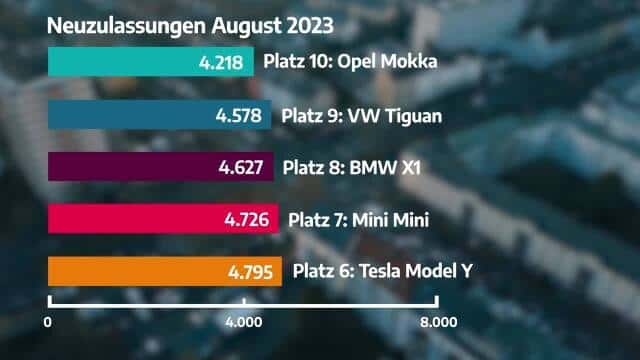 Ins Auge springt obendrein die starke Performance der Elektroautos. Nicht nur beim Fiat 500 ist dessen elektrische Modellvariante (siehe Video) im August größter Absatztreiber. Bei den Opel-Modellen Corsa und Mokka sowie beim Mini und BMW X1 sieht es ähnlich aus. Auch mitten in den Top Ten und dahinter finden sich viele Elektro-Modelle, die sich im Juli noch deutlich weiter hinten platziert hatten. Angefangen beim Tesla Model Y (von Platz 31 auf sechs) über das MEB-Trio VW ID.3 (von 44 auf zwölf), Cupra Born (von 49 auf 13) und Skoda Enyaq (von 39 auf 15) bis zum Dacia Spring (von 42 auf 20) gibt es viele elektrische Erfolgsstorys zu vermelden.