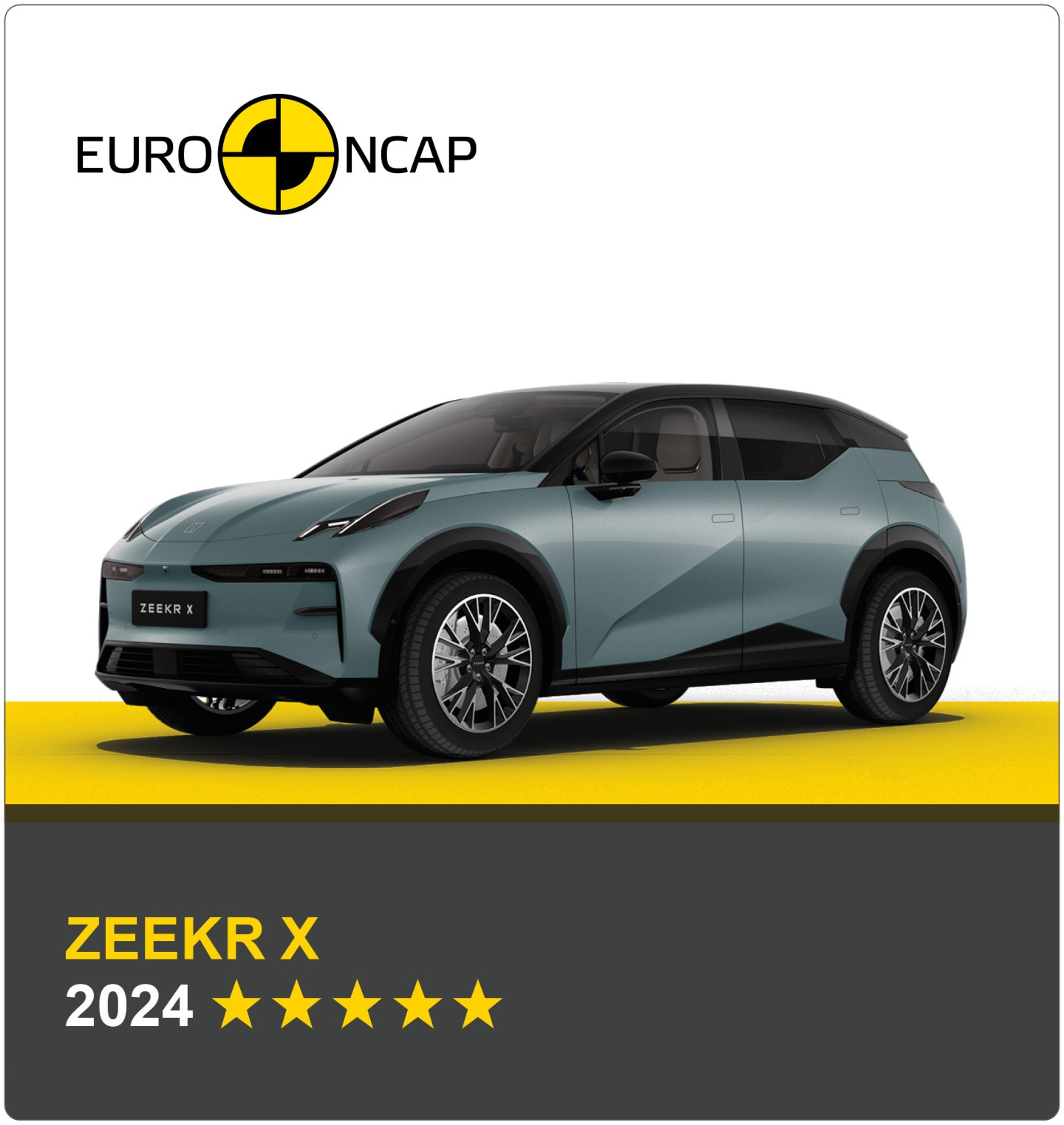 Der kompakte Elektro-Crossover Zeekr X schneidet im EuroNCAP-Crashtest stark ab. In seinem Innenraum schützt er Erwachsene (91 Prozent) und Kinder (90 Prozent) auf extrem hohem Niveau. Kein Wunder, dass für ihn unter dem Strich eine Fünf-Sterne-Wertung zu Buche steht.