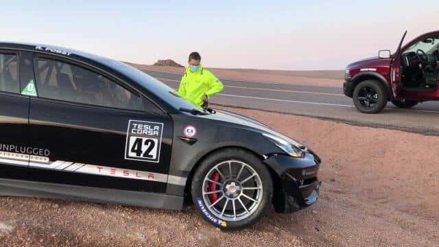 Ein spektakulärer Unfall überschattet die Tesla-Performance beim Pikes Peak International Hillclimb 2020. Das Video zeigt, wie Joshua Allan in einer der 156 Kurven die Kontrolle über seinen von Unplugged Performance modifizierten Tesla Model 3 verliert. Der Elektro-Renner kommt von der Strecke ab und landet mit geknickter Radaufhängung im Abgrund.