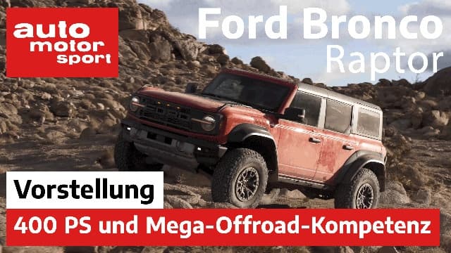 Der neue Ford Bronco Raptor zeigt im Video seine beeindruckenden Offroad-Gene. Mit 424 PS aus dem 3,0-Liter-V6-Biturbo und einem maximalen Drehmoment von 596 Newtonmetern ist er der stärkste straßenzugelassene Bronco aller Zeiten. Das Fox-Hochleistungsfahrwerk mit halbaktiven Dämpfern, 37-Zoll-Geländereifen und eine auf 33,3 Zentimeter erhöhte Bodenfreiheit machen ihn zum kompromisslosen Offroader. Die verstärkte Karosserie ist 25 Zentimeter breiter als beim Basismodell, während spezielle Dana-Achsen und ein dreistufiges Allradsystem maximale Geländegängigkeit garantieren. Mit 94 Zentimetern Wattiefe und Rampenwinkel von bis zu 47,2 Grad kennt der 2,6-Tonner im Gelände kaum Grenzen. Technische Highlights wie das Sync-4-System mit 12-Zoll-Display und sieben G.O.A.T.-Fahrmodi runden das Pake