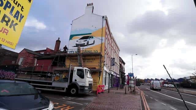 Insgesamt hat VW sechs Wandgemälde in London, Manchester, Cardiff, Birmingham, Bristol und im schottischen Glasgow malen lassen – die Künstler brauchten für ein Gemälde zwischen drei und sechs Tage.
